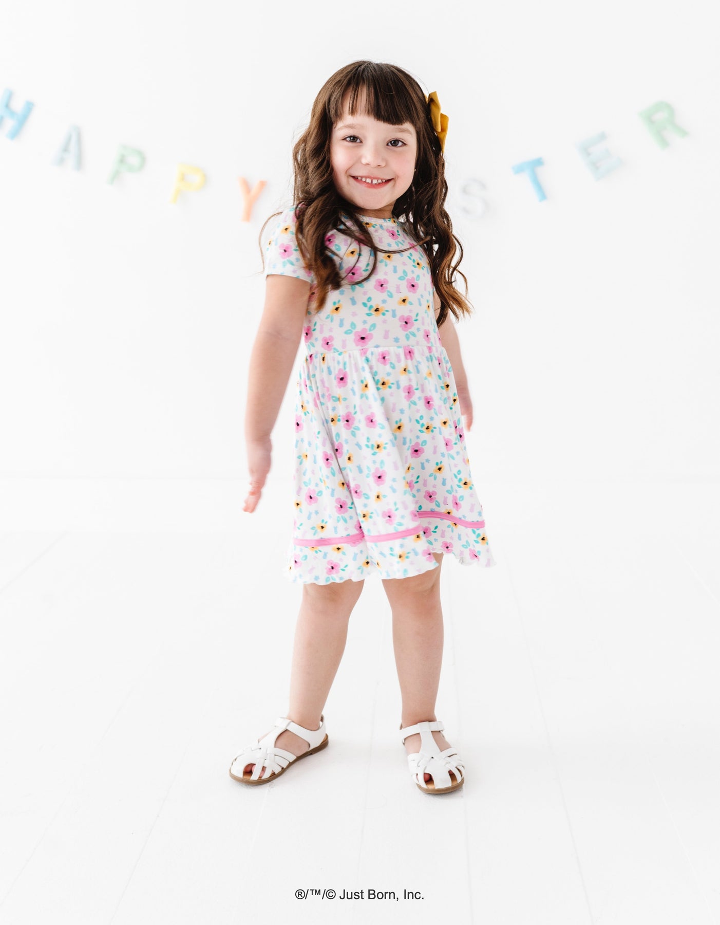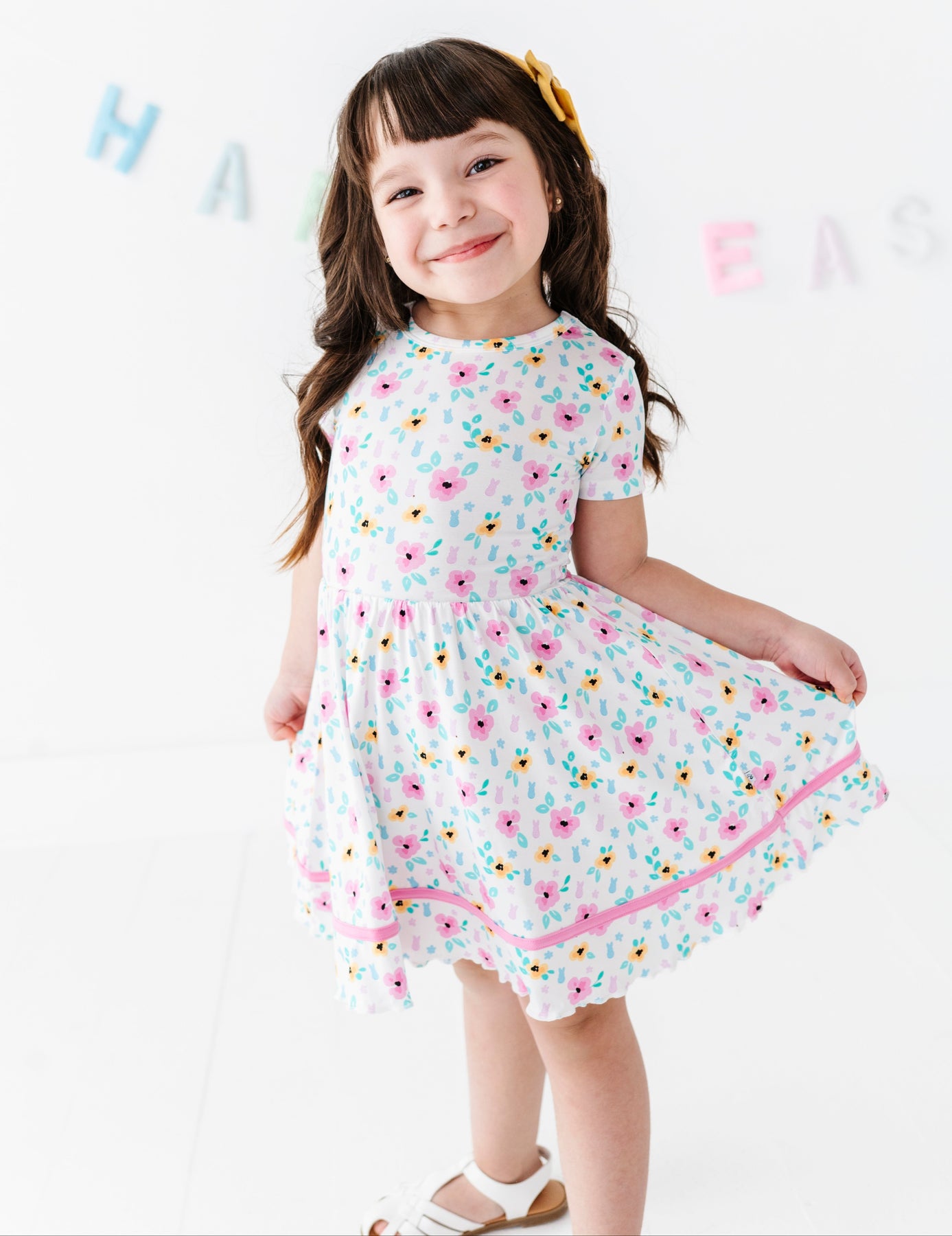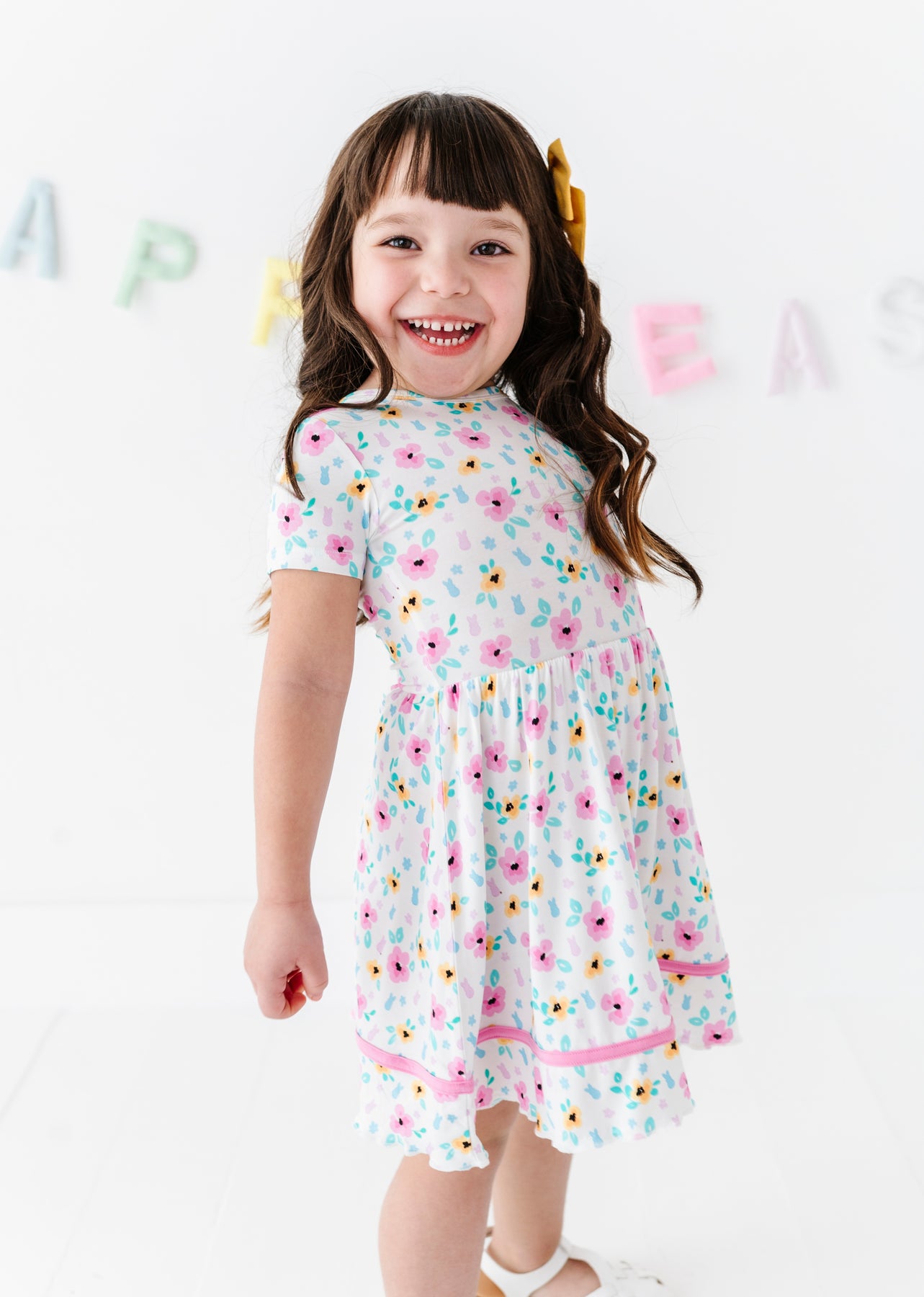 Our PEEPS® & Petals dress is made for pure springtime joy! Sprinkled with pastel flowers, hidden bunny Peeps, and the happiest pops of color, this short-sleeve style is the perfect mix of sweet and whimsical. Finished with a twirl-ready skirt and our soft, breathable bamboo fabric for all-day comfort. Because every little bunny deserves to bloom in style.