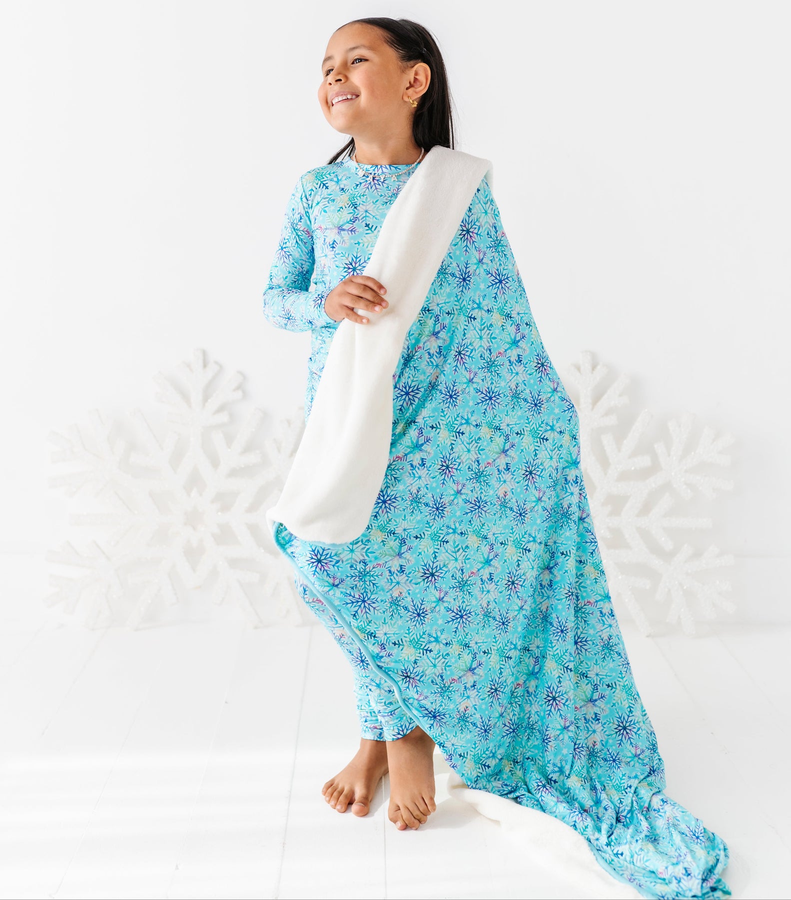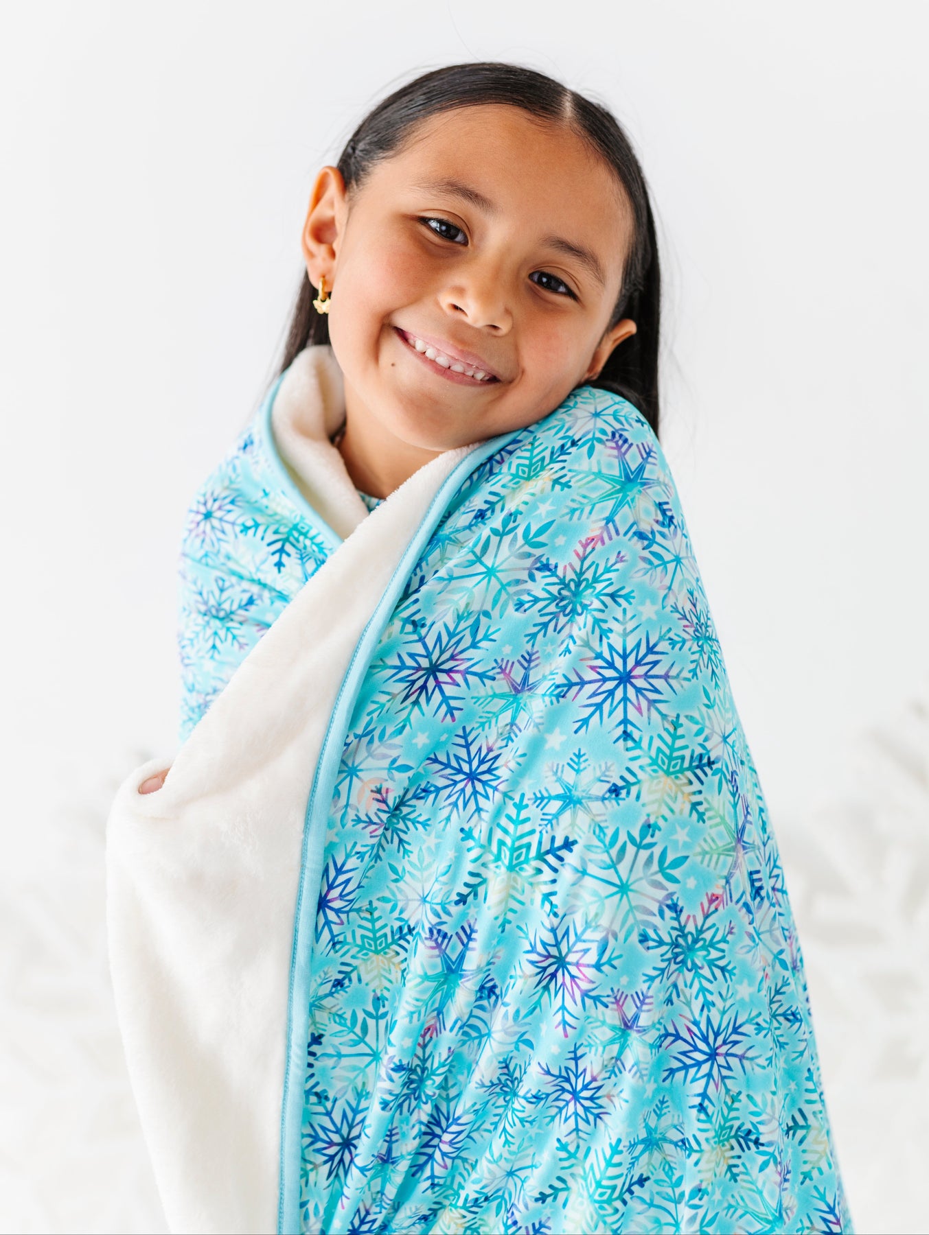 Our Crystal Plush Blanket features a buttery-soft bamboo viscose front and a cozy plush backing for the perfect mix of warmth and style. Covered in icy blue snowflakes, it’s made for snuggle sessions, movie nights, and cozy mornings all season long.
