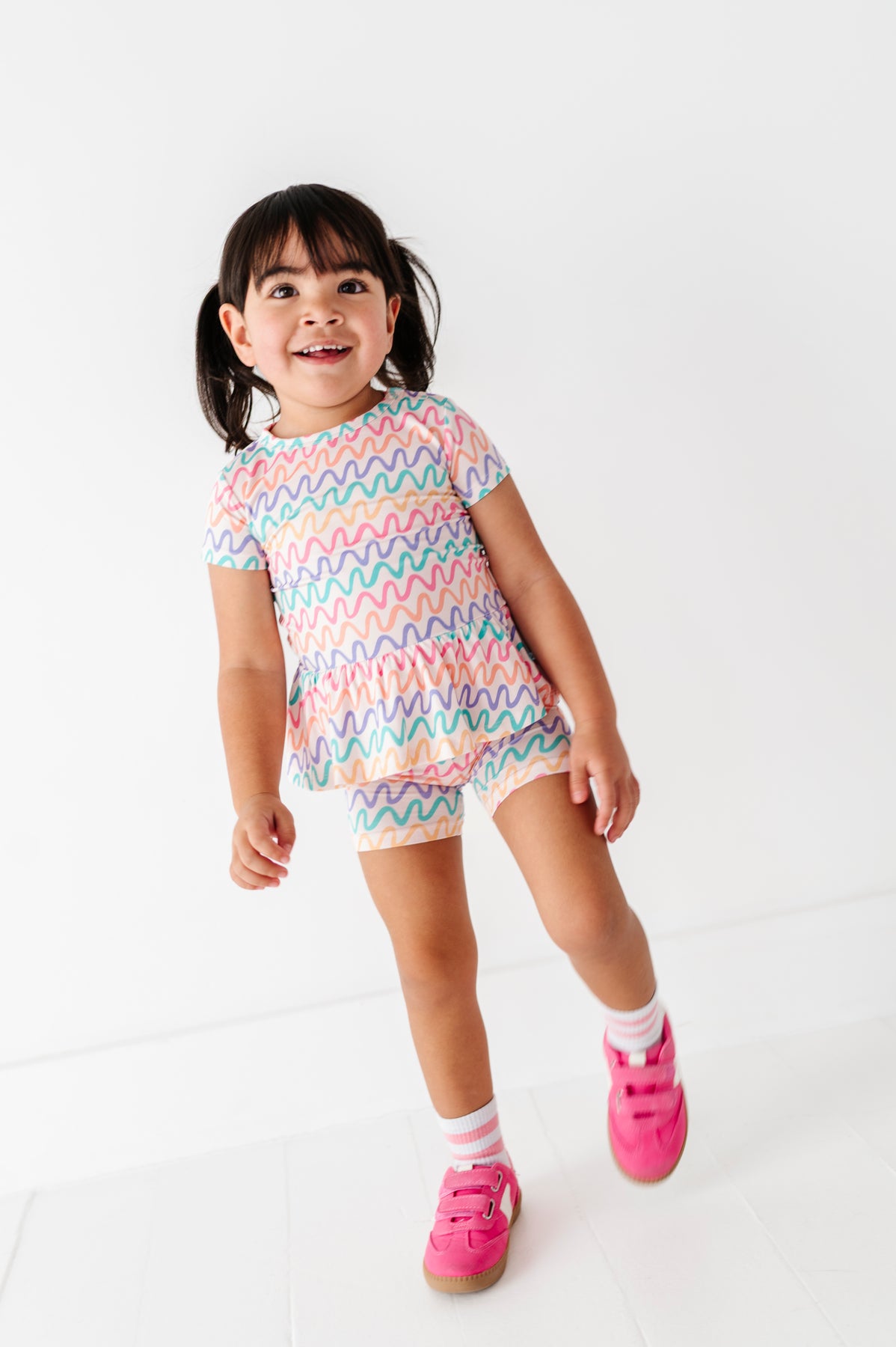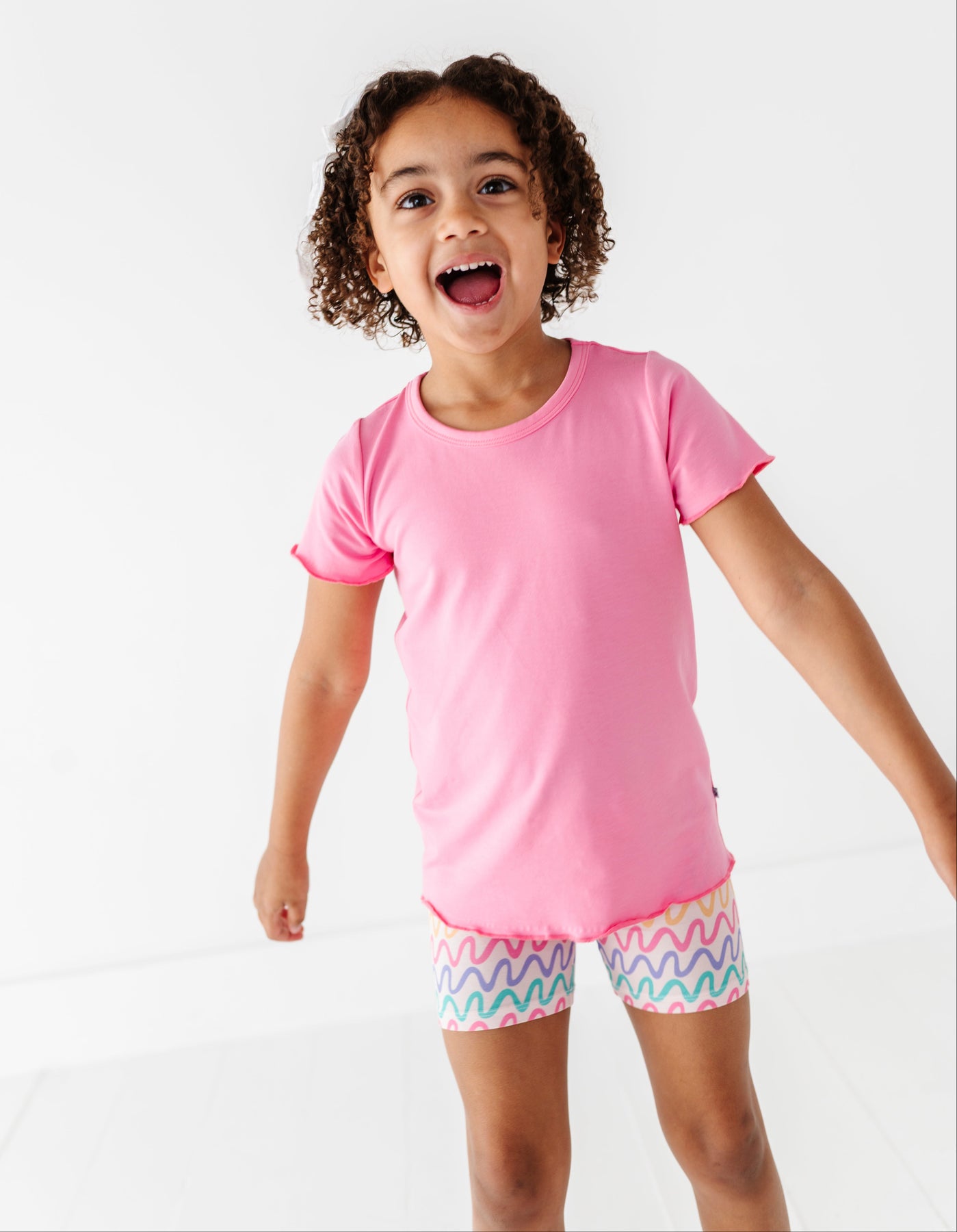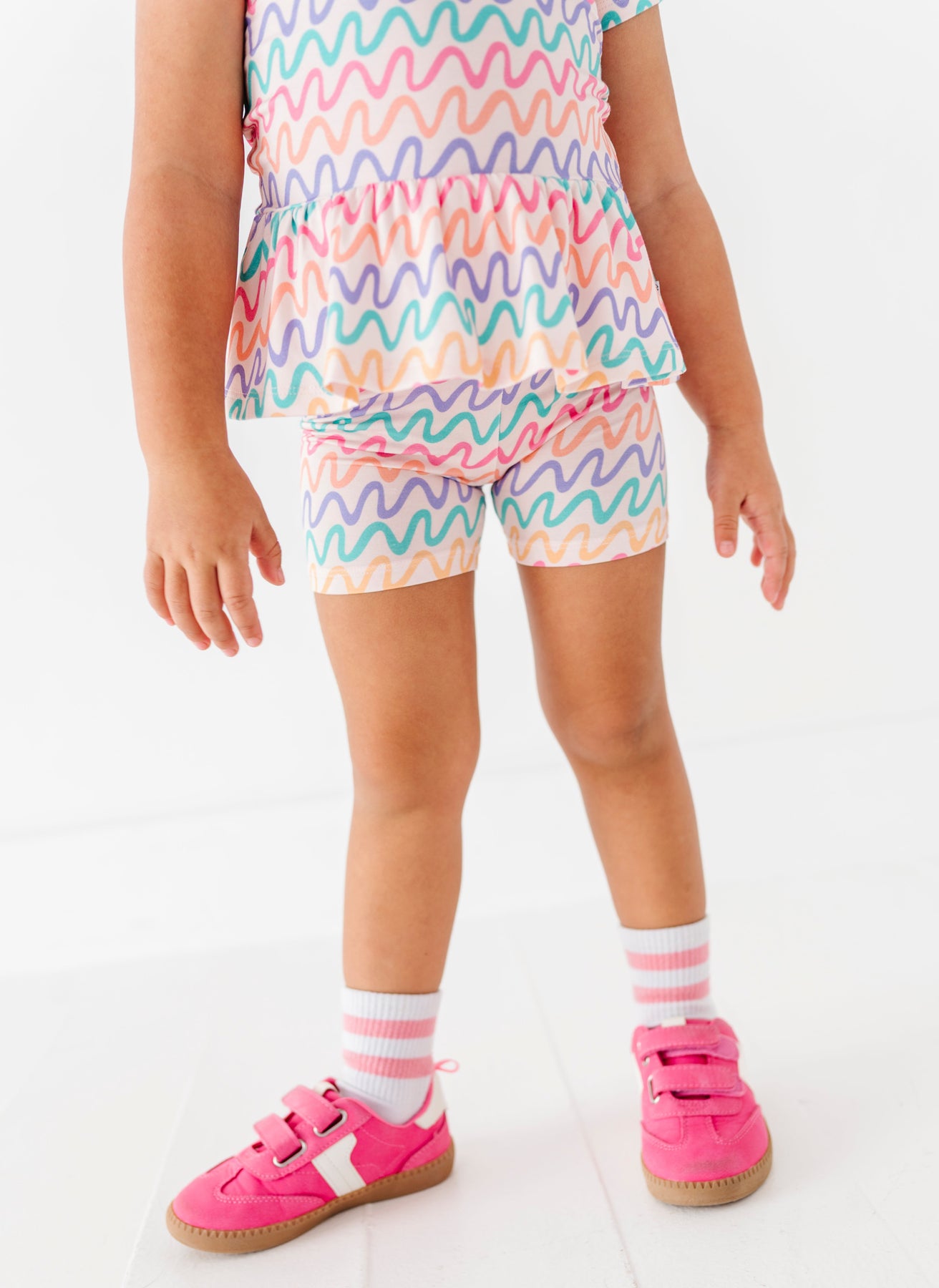Designed for the girl who is always on the move, these biker shorts offer a streamlined, "stay-put" fit that moves with her. Crafted from our premium, buttery-soft bamboo viscose, they are naturally moisture-wicking and breathable—keeping her cool and dry even during the most active sunny-day adventures. The versatile mid-length silhouette makes them perfect for wearing on their own with a graphic tee or layering under dresses for extra coverage and confidence.