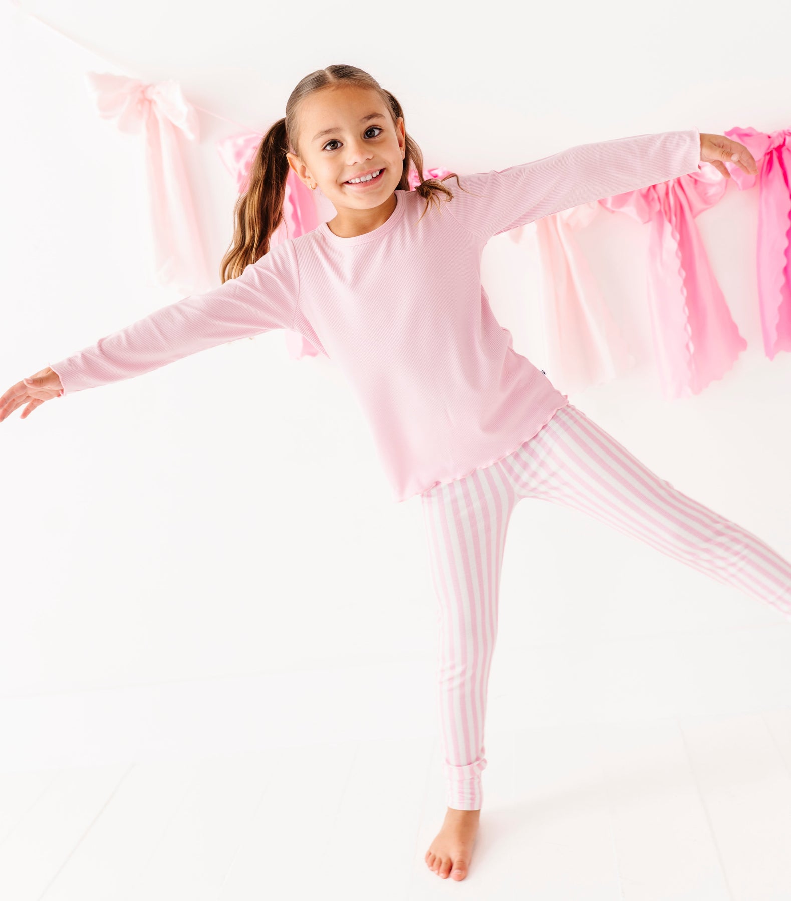 These everyday leggings are made for movement, comfort, and repeat wear. Crafted from our signature buttery-soft bamboo blend with just-right stretch, they’re breathable, cozy, and gentle on sensitive skin. Perfect for school days, playtime, lounging, and picture-perfect moments alike, these versatile ribbed leggings pair effortlessly with any tee, tunic, or peplum top for an outfit that’s as comfortable as it is cute.