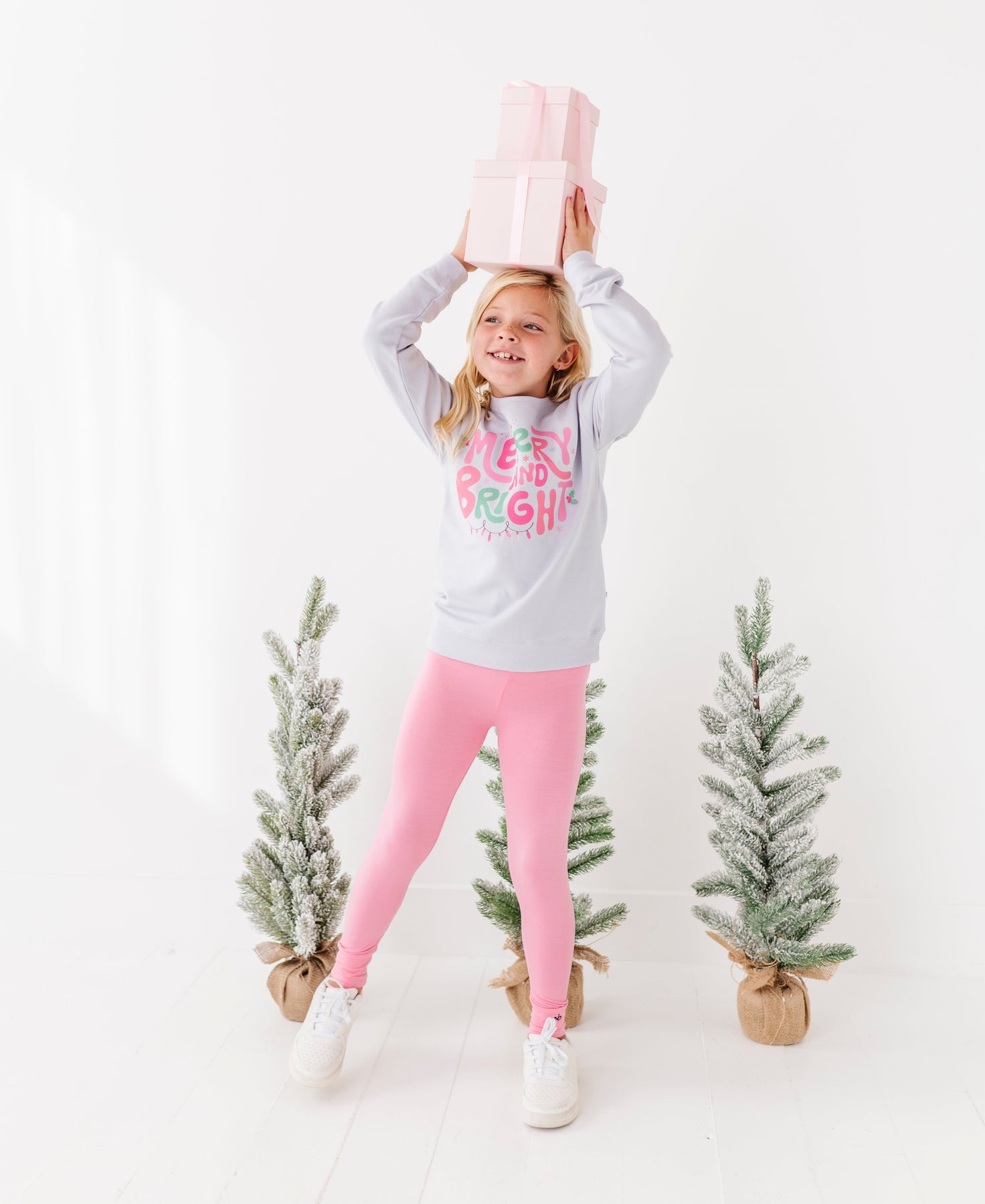 Merry, bright, and ridiculously cozy. This pastel crew rocks bubbly “Merry & Bright” lettering with twinkle lights on ultra-soft bamboo-blend fleece. Perfect for cookie runs, class parties, and every cheery thing in between. Holiday spirit, true comfort!