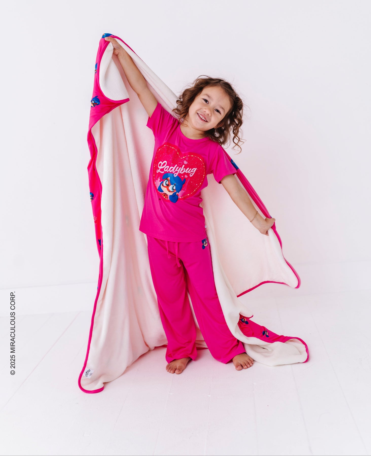 With vibrant Ladybug Chibi artwork along the trim and a bold pink base, this blanket brings superhero-level joy to any room. It’s the must-have accessory for Miraculous™ fans big and small.